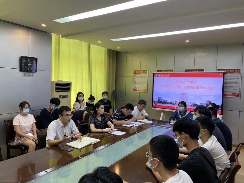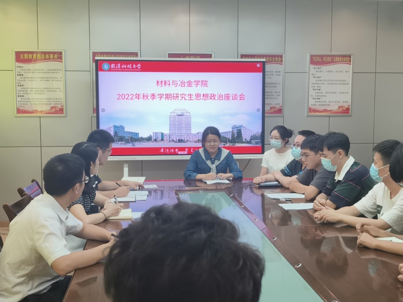 武科大网讯(通讯员蔡小建)9月29日,我院2022年秋季学期研究生思想座谈会在教六楼6513会议室开。院党委副书记林莉、副院长付绿平出席会议并与参会研究生亲切交流,34名2022级博士、硕士新生代表参加座谈。