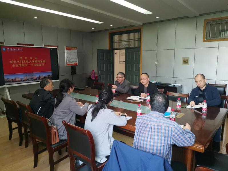 2023年4月10日下午,华北水利水电大学材料学院院长仝玉屏、副院长陈希、无机非金属材料专业专业负责人杨中正教授、材料学院材料学系张海龙副教授一行四人来我院交流无机非金属材料专业建设情况。我院顾华志院长和无材系负责人韩兵强、马妍、刘浩、鄢文、尹玉成老师参与了交流。