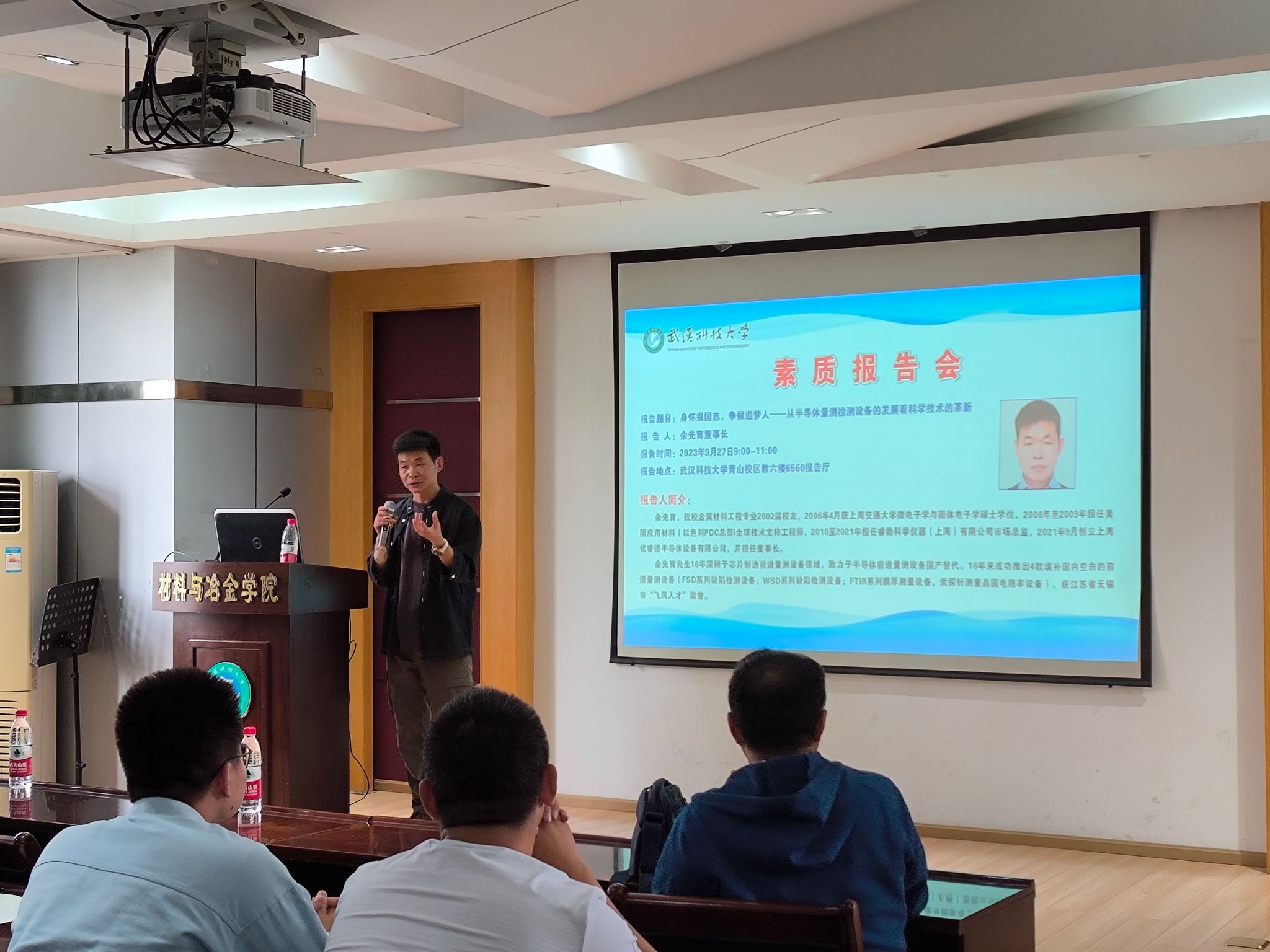 武科大网讯(通讯员 黄星宇)为了喜迎我校办学125周年,促进专业学习与生产实际相接轨,学部金属材料工程专业2002届校友、上海优睿谱半导体设备有限公司董事长余先育先生于9月27日回访母校,在教六楼6560报告厅作了题为《身怀报国志,争做追梦人——从半导体量测检测设备的发展看科学技术的革新》的素质报告会。