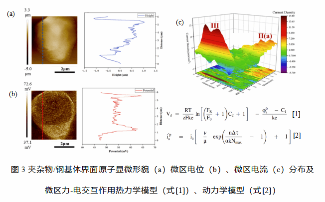 针对非金属夹杂物引发钢铁材料局部腐蚀这一共性科学问题,依据Gutman最早提出的力作用下金属腐蚀力-电交互作用理论,从夹杂物/钢基体界面微区界面特性(微区残余应力和伏特电位差分布)及微区溶解电流密度分布等出发,建立了微区力-电相互作用热力学和动力学模型,局部优先溶解的夹杂物/钢基体界面伏特电位差临界判据为15mV,提出了Mg-Ca复合处理管线钢由早期局部优先溶解逐步发展为均匀腐蚀机理,为通过夹杂物控制改善管线钢腐蚀性能提供理论依据和数据支持。相关成果发表在材料腐蚀领域顶刊Corrosion Science,224(2023)111534. (IF: 8.3)。william威廉英国黄峰教授为论文通讯作者,博士生肖虎为第一作者。