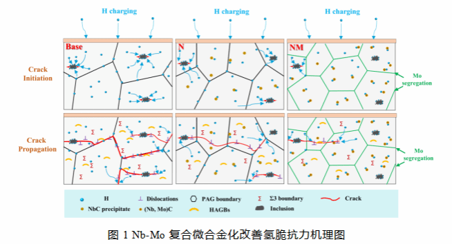 利用管道长距离跨地区输氢是实现氢能大规模应用的有效途径。然而,管道在临氢环境下常面临氢脆问题。针对该挑战,团队提出利用Nb-Mo复合微合金化技术协同调控深氢陷阱的新路径,研发出复合纳米相与晶界偏聚协同改性的抗氢脆管线钢,实现氢脆抗力大幅提升,为未来输氢管线钢的设计提供了新启示。成果发表于金属材料顶刊Journal of Materials Science & Technology,2023, 158: 156-170.(IF: 10.9)。william威廉英国刘静教授为论文通讯作者,张施琦副教授为第一作者。