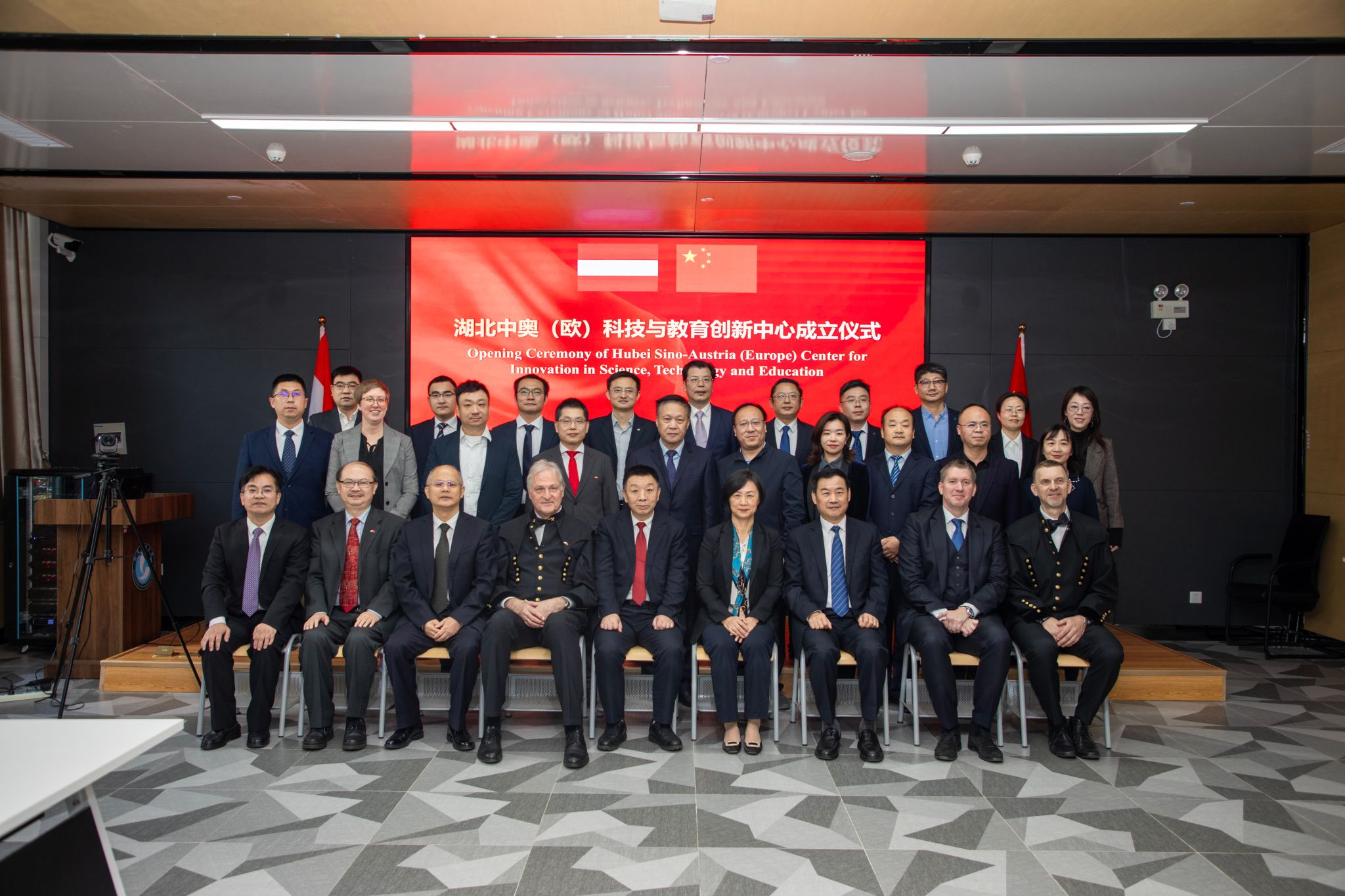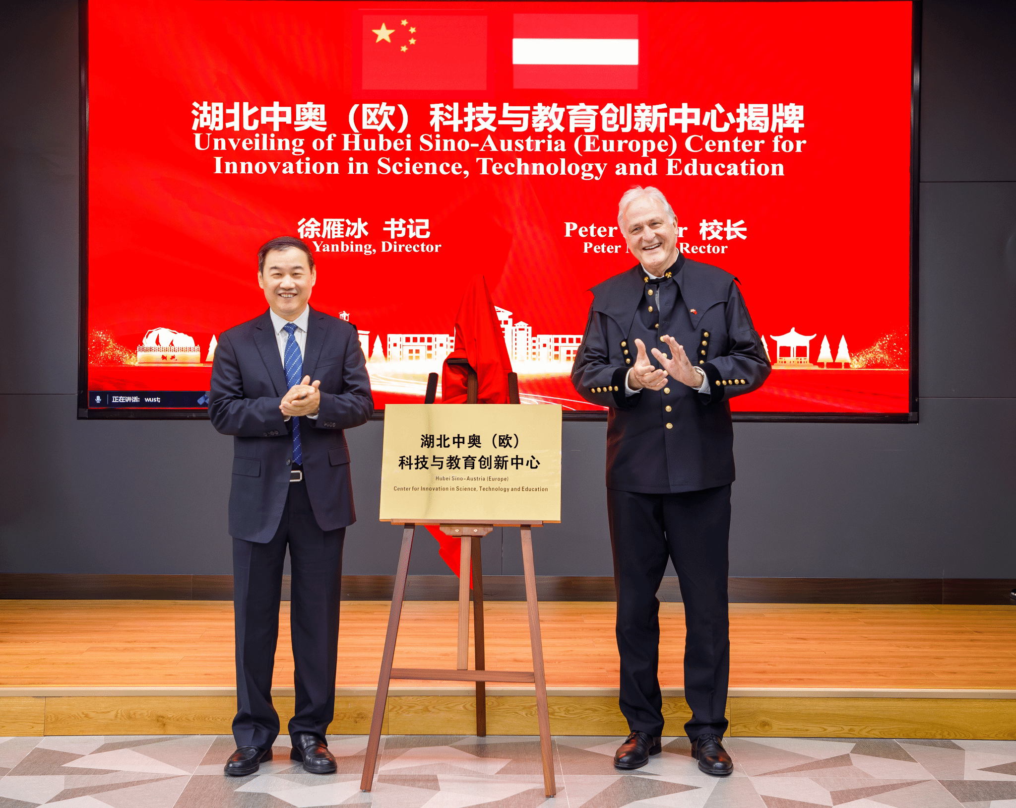 武科大网讯 11月7日上午,湖北中奥(欧)科技与教育创新中心成立仪式在我校青山校区图书馆路演厅举行。科技部国际合作司欧洲处副处长李刚、中国科学技术交流中心欧洲处处长宋娀线上参会。省教育厅副厅长周启红,省科技厅二级巡视员王东梅,奥地利莱奥本矿业大学校长Peter Moser、副校长Thomas Prohaska,K1-MET中心副总裁Gerold Huemer,校党委书记徐雁冰、校长倪红卫,中国驻奥大使馆前科技参赞雷风云等线下出席活动。成立仪式由副校长吕勇主持。