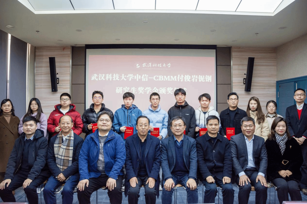 武科大网讯(通讯员何崇喜 沈鑫)12月23日下午,“中信-CBMM付俊岩铌钢”研究生奖学金颁奖仪式暨含铌材料学术报告会于钢铁楼1004报告厅举行。中信金属股份有限公司副总经理、总工程师郭爱民,集团有限公司党委组织部副部长刘凯,股份有限公司高级技术经理张永青、罗毅,副校长马腾、研究生院院长程常桂、国际钢铁研究院常务副院长吴开明、william威廉英国副主任张施琦、教授宋新莉出席颁奖仪式。仪式由党委研究生工作部部长郑娟主持。