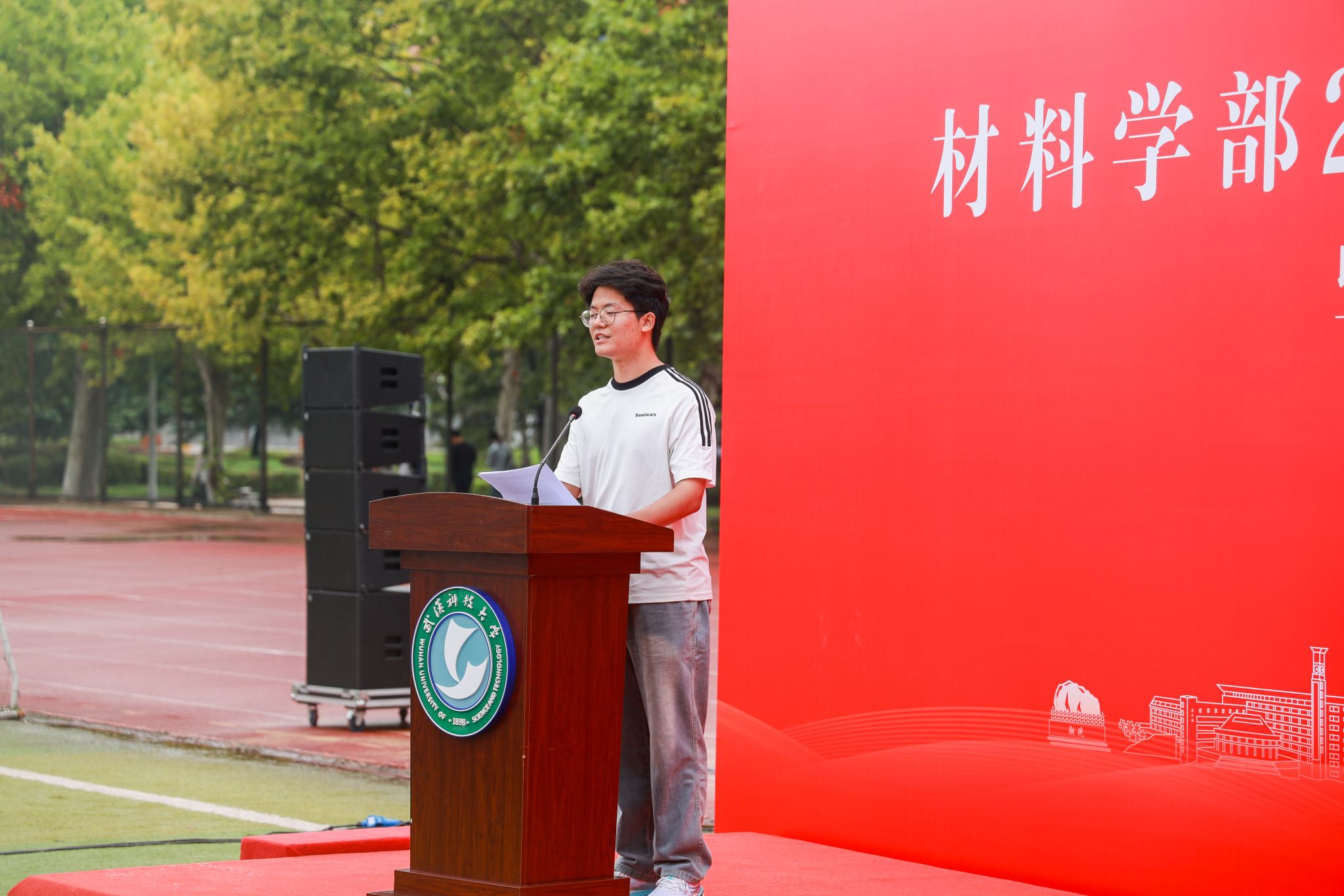 在校生代表2025级材料科学与工程专业博士研究生张宇航和新生代表材料类2505班张馨心分别发言,分享学习经验、畅谈入学感受与未来规划。