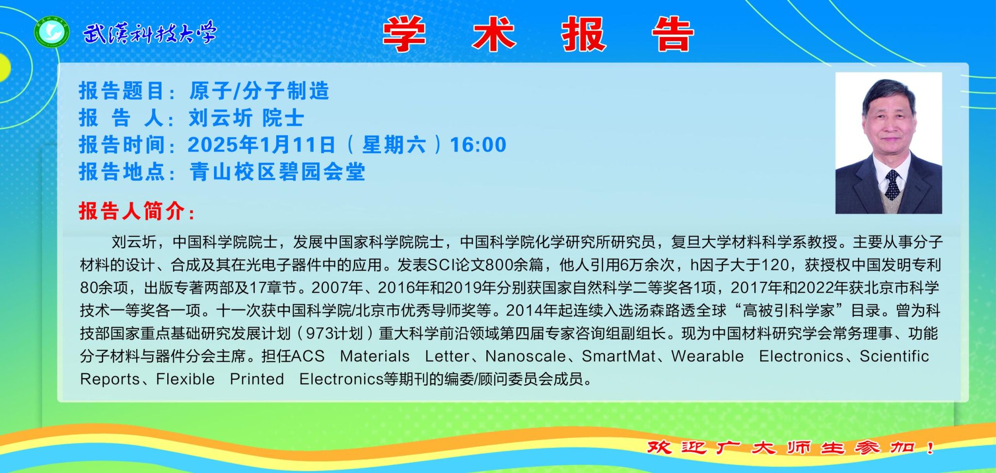 刘云圻,中国科学院院士,发展中国家科学院院士,中国科学院化学研究所研究员,复旦大学材料科学系教授。主要从事分子材料的设计、合成及其在光电子器件中的应用。发表SCI论文800余篇,他人引用6万余次,h因子大于120,获授权中国发明专利80余项,出版专著两部及17章节。2007年、2016年和2019年分别获国家自然科学二等奖各1项,2017年和2022年获北京市科学技术一等奖各一项。十一次获中国科学院/北京市优秀导师奖等。2014年起连续入选汤森路透全球“高被引科学家”目录。曾为科技部国家重点基础研究发展计划(973计划)重大科学前沿领域第四届专家咨询组副组长。现为中国材料研究学会常务理事、功能分子材料与器件分会主席。担任ACS Materials Letter、Nanoscale、SmartMat、Wearable Electronics、Scientific Reports、Flexible Printed Electronics等期刊的编委/顾问委员会成员。