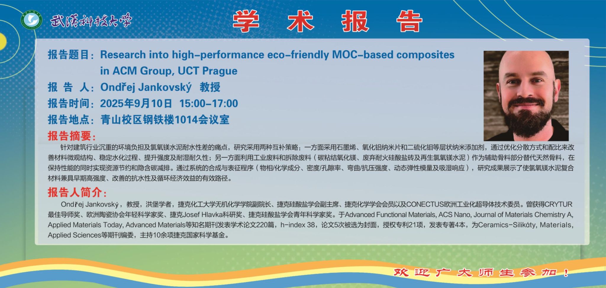 报告题目:Research into high-performance eco-friendly MOC-based composites in ACM Group, UCT Prague