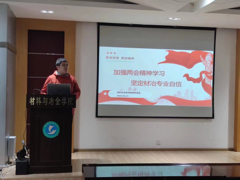 最后,大家对两会精神的内涵进行了深入的交流,并在如何践行两会精神的问题上积极的提出了自己想法。胡千说到:“总书记多次强调‘在强国建设、民族复兴的新征程,我们要坚定不移推动高质量发展’‘高质量发展是全面建设社会主义现代化国家的首要任务’,作为材冶学子,我们要聚焦低碳冶金、新能源技术等核心领域,秉持板凳要坐十年冷的信念投身科研,为祖国的发展与建设积极贡献自己的力量”。