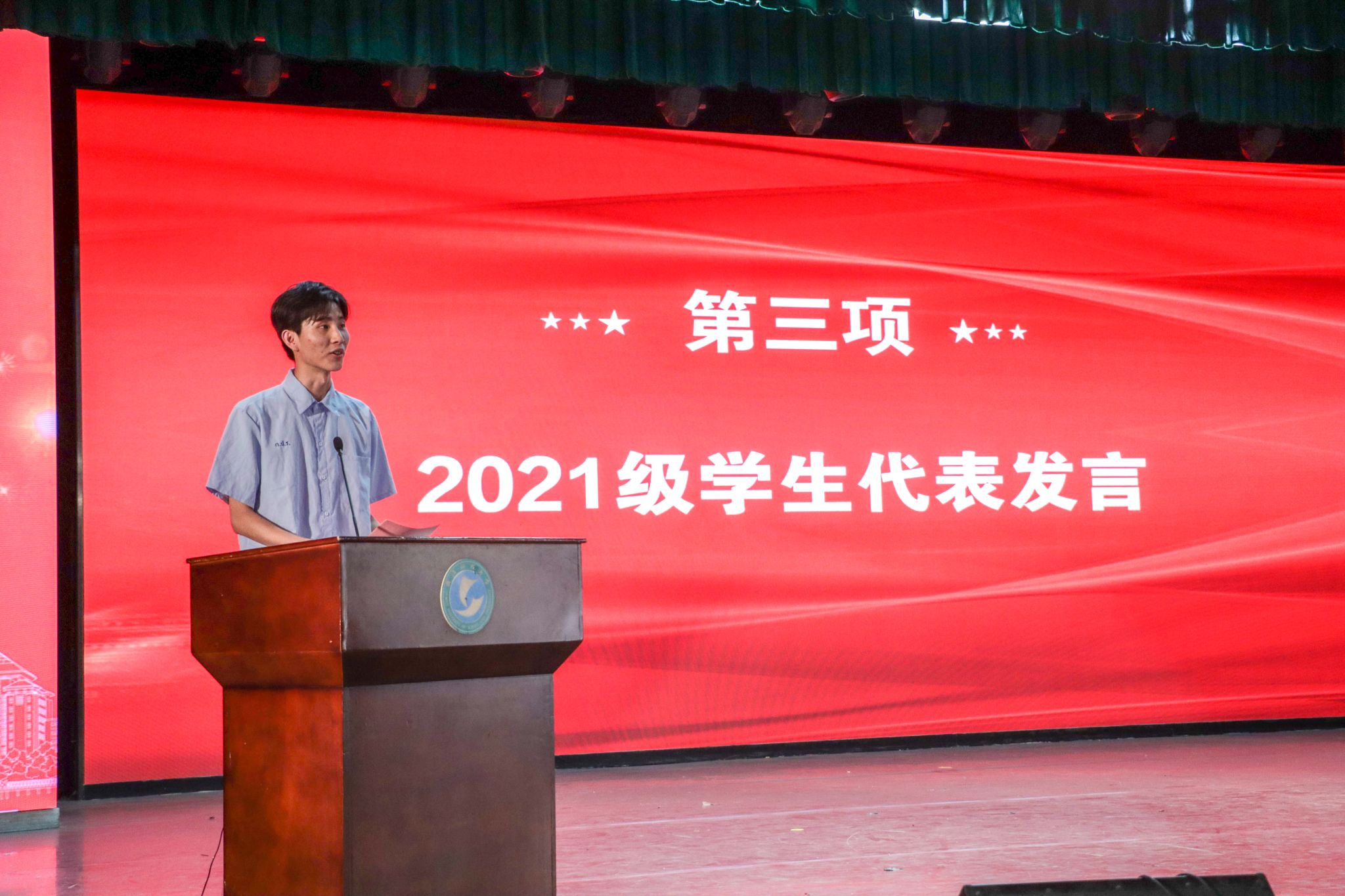 能源与动力工程2021级3班陈格作为高年级学生代表,向新生分享了三点建议。一是目标明确,规划未来;二是勇于探索,敢于尝试;三是保持好奇,勇于实践。