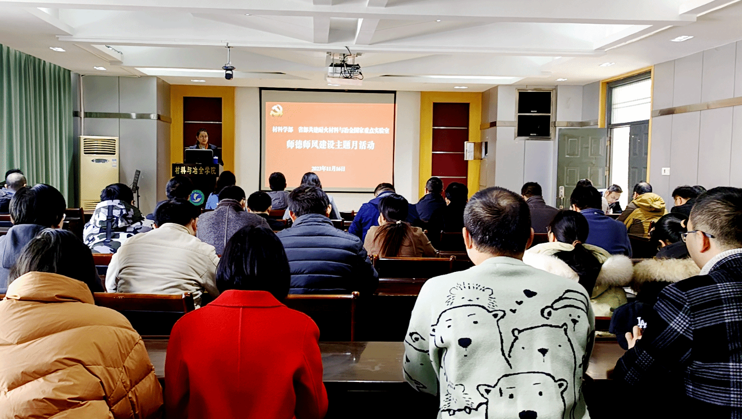 武科大网讯(通讯员梅艳君)11月16日,为贯彻落实2023年度师德师风建设主题月活动要求,我部和省部共建耐火材料与冶金国家重点实验室在青山校区主楼6560教室开展师德师风教育专题宣讲,我部领导班子成员及各系、各部门教师参会,会议由我部党委书记潘丽莎主持。